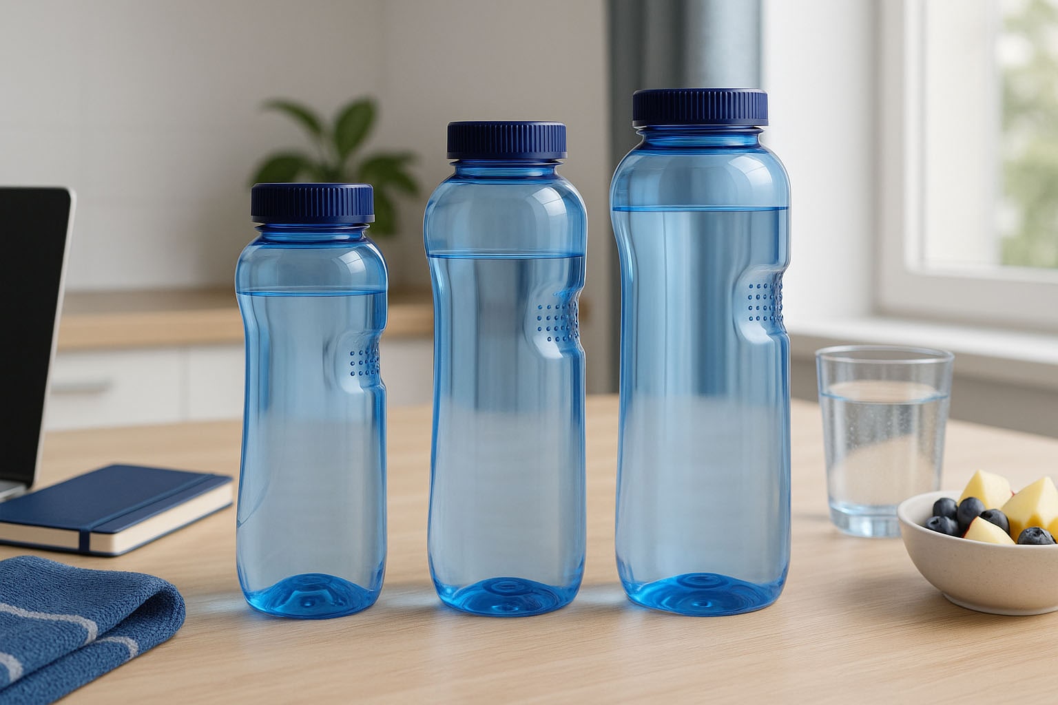 Det ergonomiske designet med gripefordypning sikrer enkel håndtering, mens det markante blå designet gir et moderne utseende. Tilgjengelig i størrelser fra 500 til 1000 ml, passer flaskene ideelt for vann, juice eller sportsdrikker – perfekt for på farten, på kontoret eller under trening. Produsert i Østerrike, imponerer de med sin kvalitet og holdbarhet.