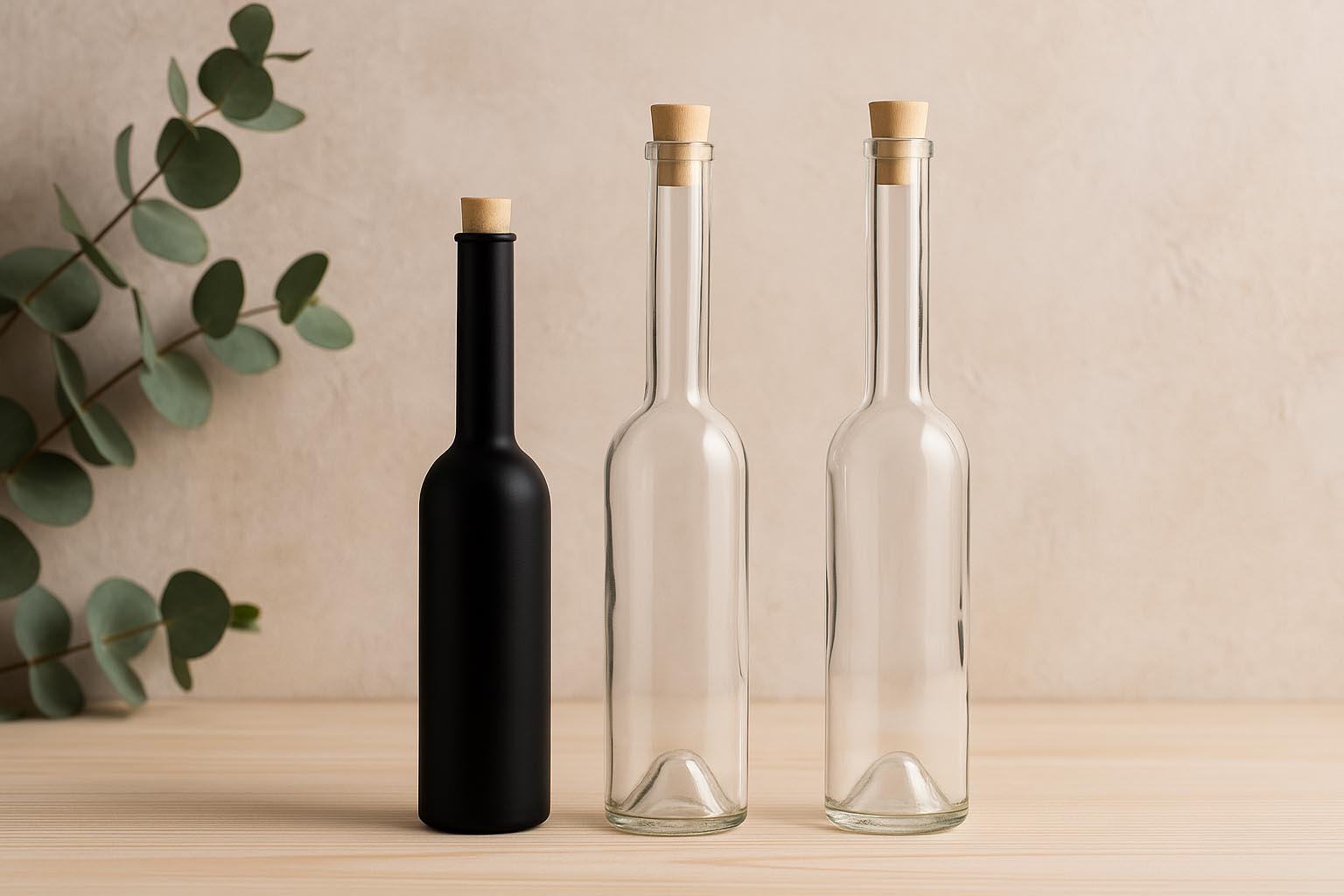 Serien "Opera" kombinerer enkel raffinement med allsidig funksjonalitet og tilbyr en stilfull emballasjeløsning for kvalitetsbrennevin, edle viner, fine oljer, eddik og mye mer. Med sin lange, slanke hals og elegante silhuett skaper den en harmonisk balanse mellom estetikk og praktisk bruk. Tilgjengelig i fargene klar, svart og hvit, samt i volum fra 100 til 1000 ml, gir "Opera" fleksible bruksområder for ulike produkter. Den klassiske korkåpningen sørger for en sikker forsegling og kan kombineres med passende lukkinger fra vårt sortiment. Med sitt tidløse utseende og allsidige anvendelighet er Opera det perfekte valget for merker som satser på kvalitet, stil og funksjonalitet.