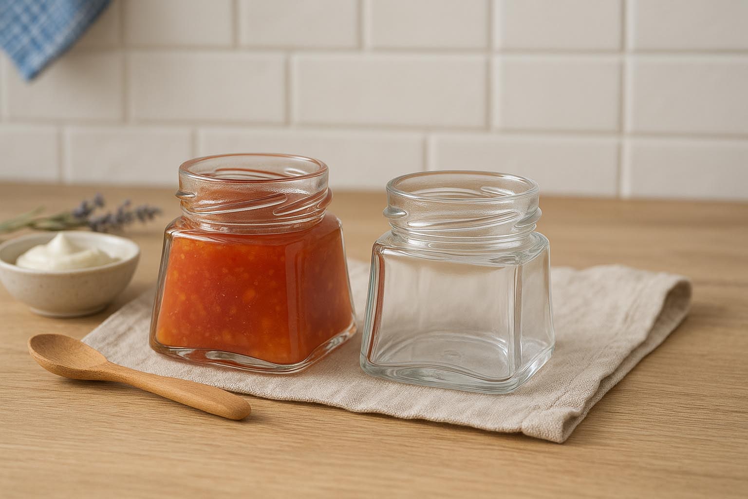 Det firkantede glasset Luxor imponerer med sin unike form: Med en rektangulær bunnflate som overgår i en rund form oppover, skaper det en spesiell visuell effekt. Denne ekstraordinære glassdesignen gjør det til det perfekte valget for høykvalitets kremer og lotioner, men også for delikatesser som sennep eller syltetøy. Deep Twist-Off-munningene DTO 58 og DTO 63 sikrer en trygg forsegling – passende lokk finnes i vårt sortiment. Luxor kombinerer moderne design med allsidig funksjonalitet og fremhever hvert innhold med stil.