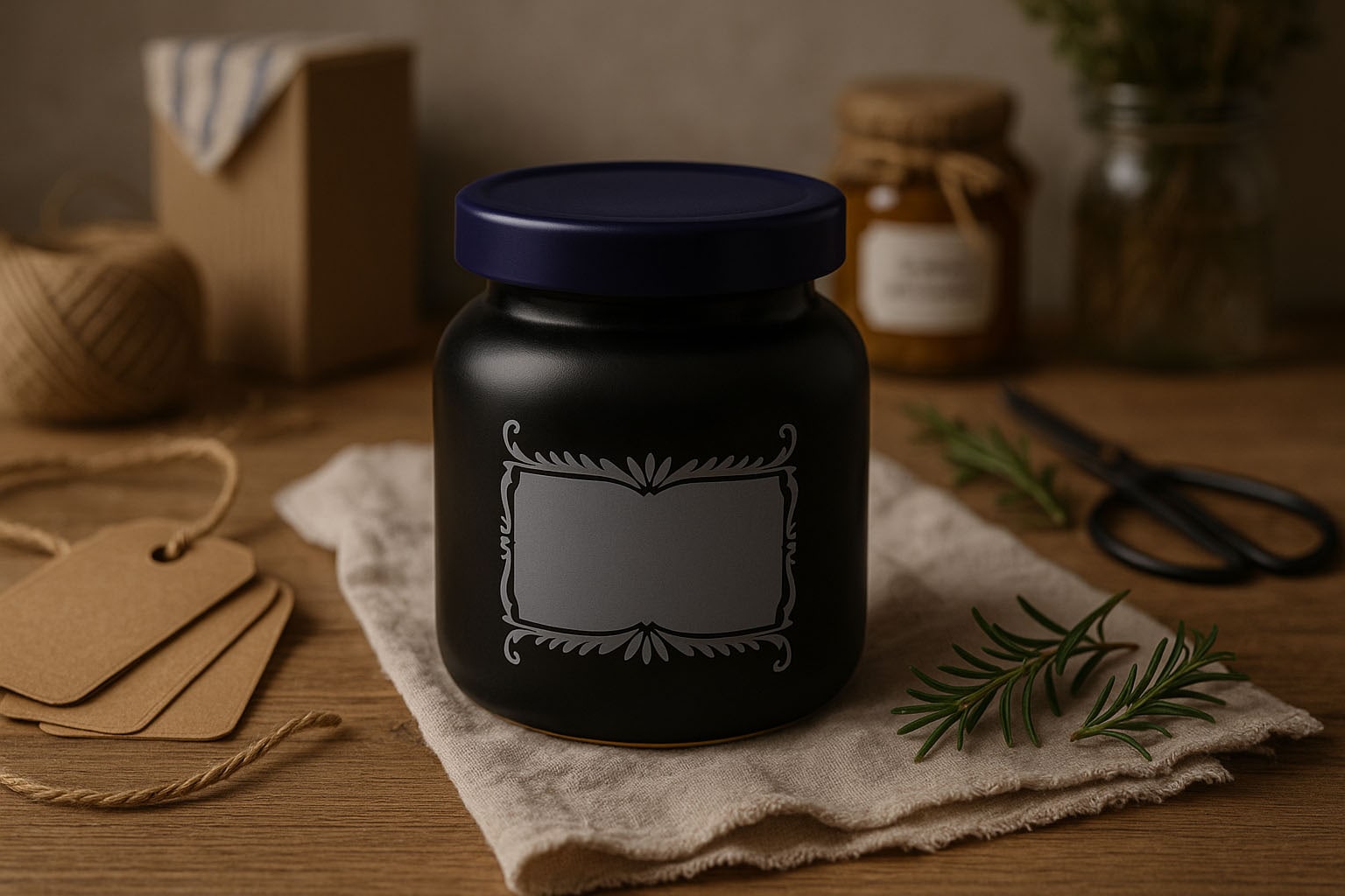 Glass og flasker 270 ml steintøykrukke, motiv: etikettfelt, keramikk, svart, munningslokk