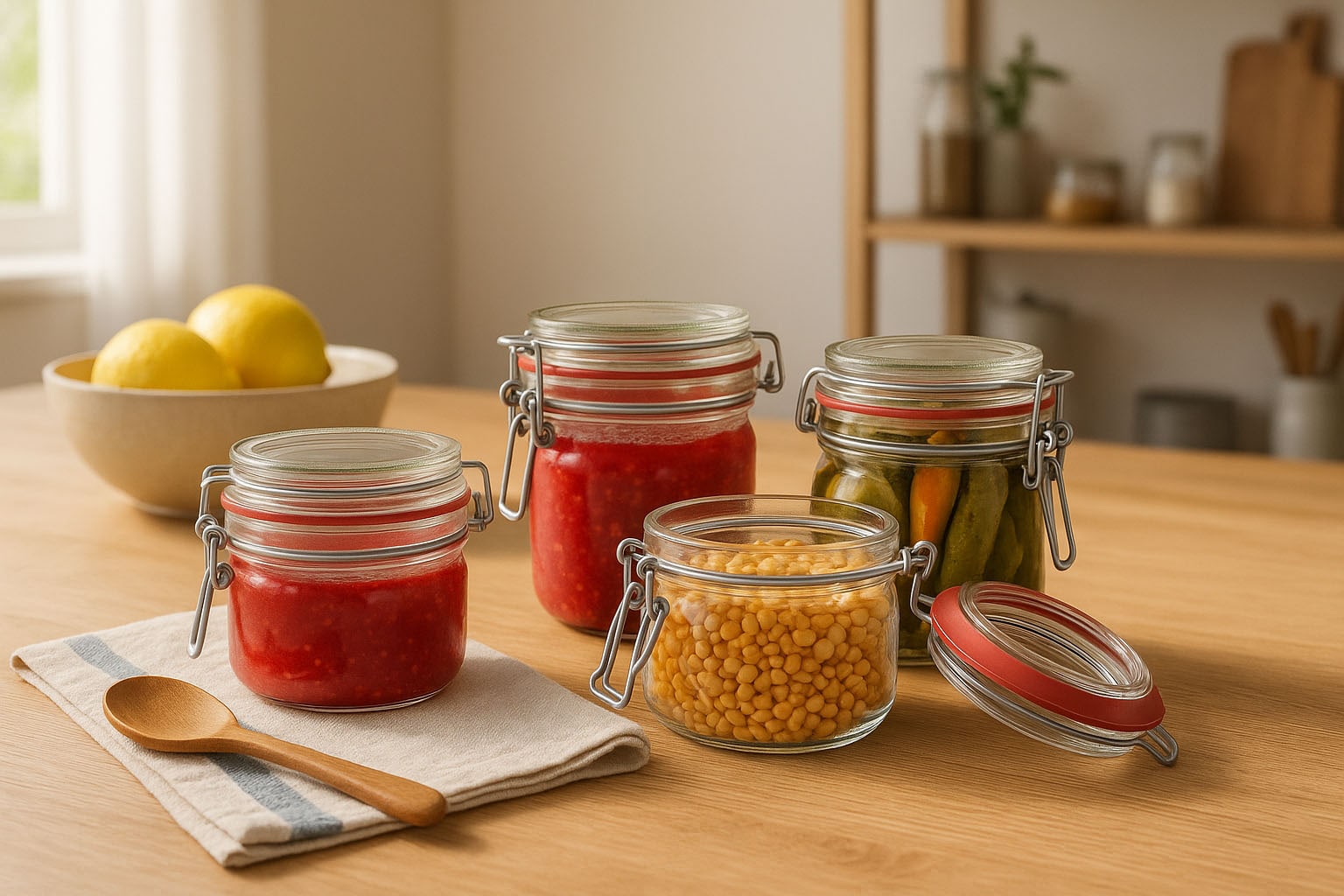 Trådspenneglassene egner seg ideelt til sylting og konservering av hjemmelagde spesialiteter som syltetøy, chutney eller syltede grønnsaker. De tilbyr også en hygienisk og stilfull løsning for oppbevaring av tørre matvarer som müsli, mel eller belgfrukter.