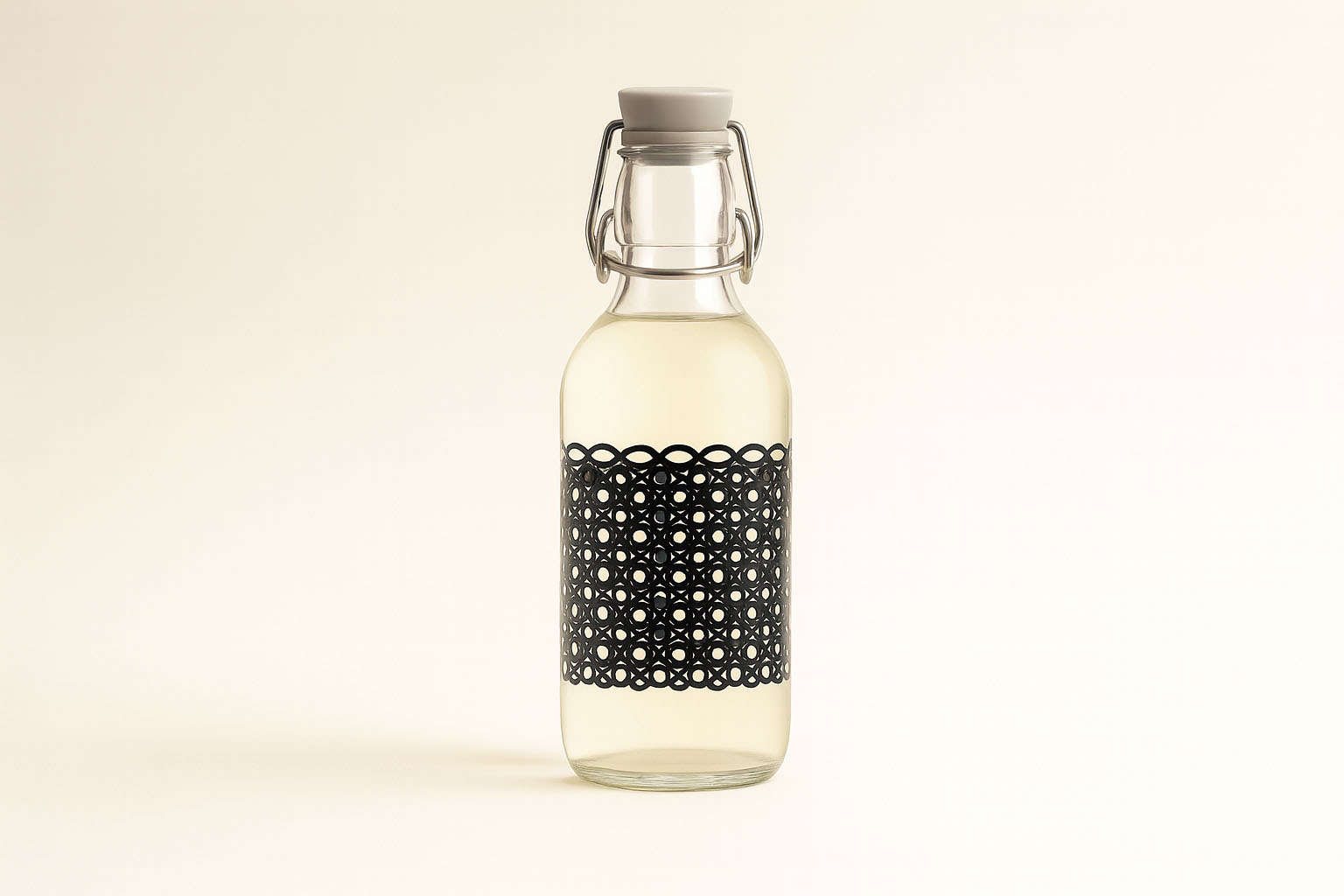 Bormioli Rocco 500 ml glassflaske Emilia trykt 'Manolibera rosa', åpning: patentlokk