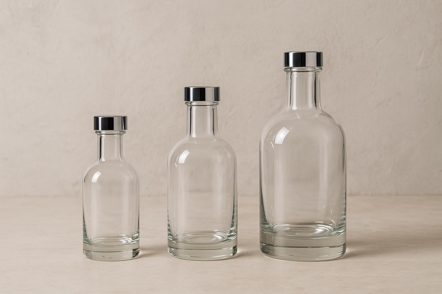 Serien First Class forener førsteklasses håndverk med tidløs eleganse og tilbyr et eksklusivt utvalg av klare glassflasker som er utviklet for de høyeste krav. Produsert i Italia, står disse elegante rundskulderflaskene for feilfri kvalitet og et design som perfekt kombinerer raffinement og funksjonalitet. Med en kapasitet på 250 til 700 ml og valgfritt korkhals eller GPI 28 / GPI 33, er First Class det ideelle valget for premium likører, edle brennevin og kvalitetsgin. De presist produserte glassflaskene understreker eksklusiviteten i hver kreasjon og setter nye standarder i verden av høykvalitets spritemballasje.