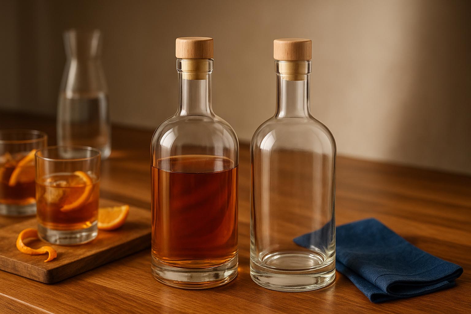 Designflasken Franco kombinerer italiensk håndverk med tidløs eleganse og tilbyr en stilfull løsning for kvalitetsbrennevin, likører, sirup og andre eksklusive fyllvarer. Tilgjengelig i størrelsene 500 og 700 ml, imponerer den med klare linjer og en harmonisk form som fremhever hver påfylling perfekt. Den klassiske korkåpningen gir en sikker og stilfull forsegling – passende korker finnes i vårt sortiment. Med sin høykvalitets utførelse og minimalistiske design er Franco det ideelle valget for merker som ønsker å forene eksklusivitet og eleganse i en flaske.