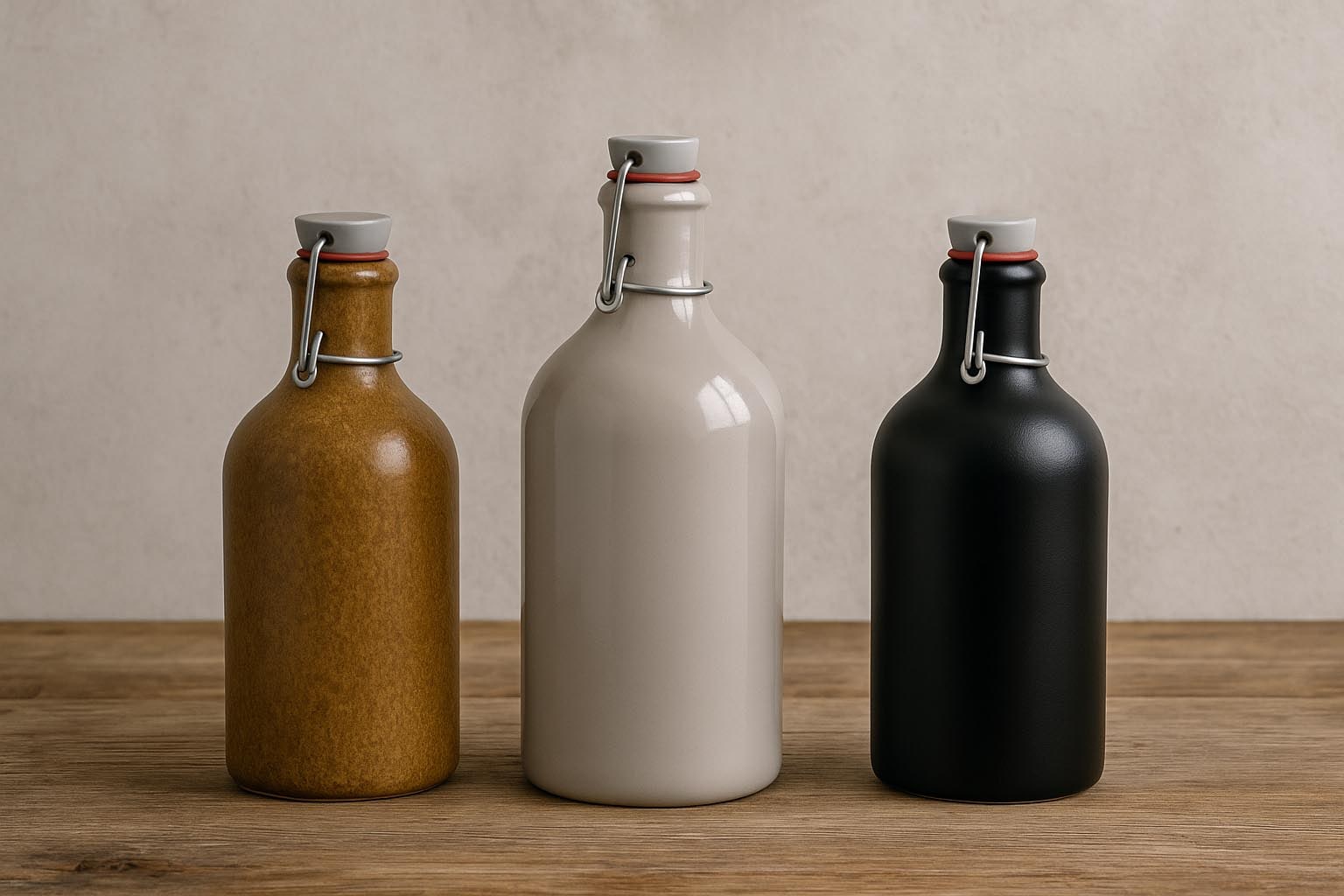 Den separat tilgjengelige patentlåsen og gummipakningen sikrer en lufttett forsegling av leirkrukken. Ideell for drikkevarer, eddik og oljer, bevarer den friskheten og gir flaskene et nostalgisk preg. Enkel å åpne og lukke, tilbyr patentlåsen en pålitelig og holdbar løsning.