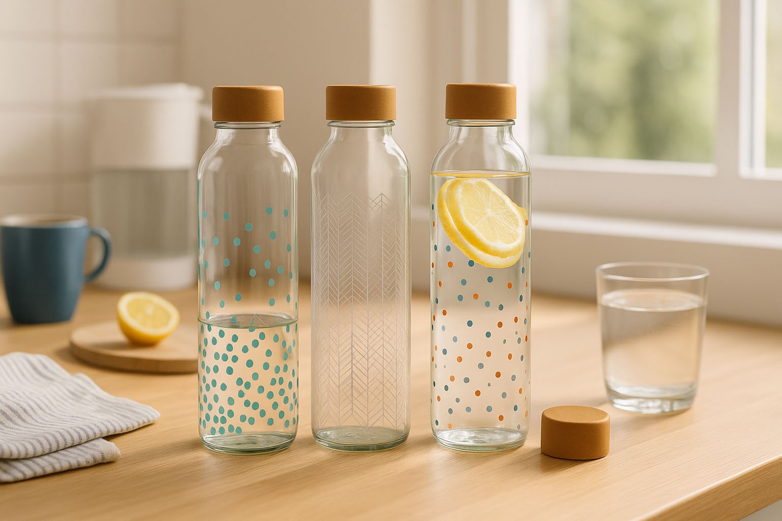 CARRY Bottle kombinerer moderne design med bærekraft og funksjonalitet. Den er den ideelle drikkeflasken for miljøbevisste mennesker. Laget av høykvalitets glass, imponerer den med sin holdbare kvalitet og sin slanke, sylindriske form som ligger behagelig i hånden. Den praktiske skrukorken sørger for en sikker forsegling – passende lokk er tilgjengelig i vårt sortiment. Med kreative motiver som fargerike prikker, flytende vannlinjer og geometriske strukturer setter CARRY Bottle stilfulle aksenter og gjør drikking på farten til et ekte statement. Perfekt for alle som ønsker å forene estetikk og bærekraft i hverdagen.