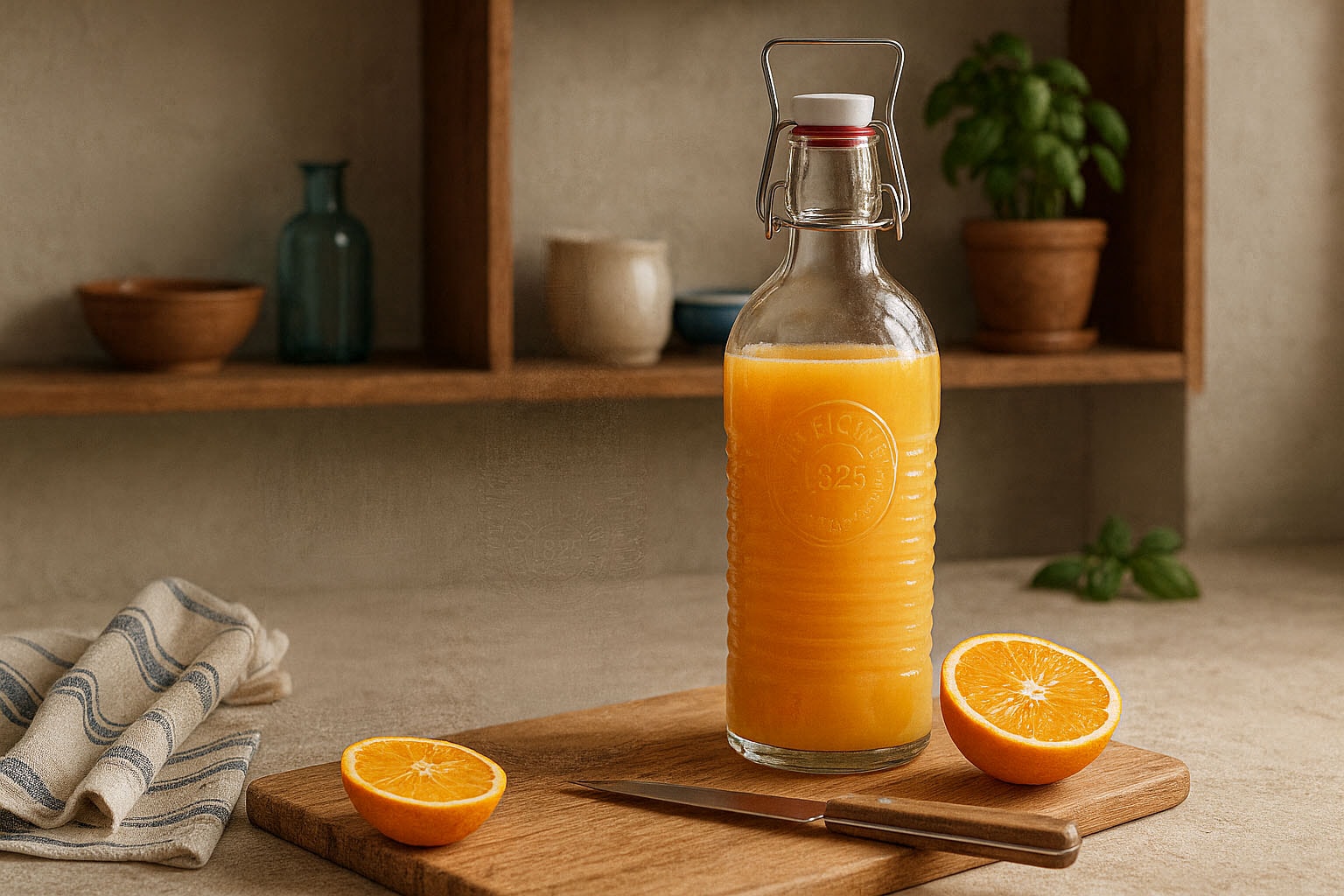 Enten det er vann, melk, juice eller mange andre væsker – «Officina 1825»-flasken er allsidig i bruk. Den hengslede lukking sikrer en tett forsegling og gjør det enkelt å lukke flasken igjen, noe som bevarer friskhet og aromaer optimalt.