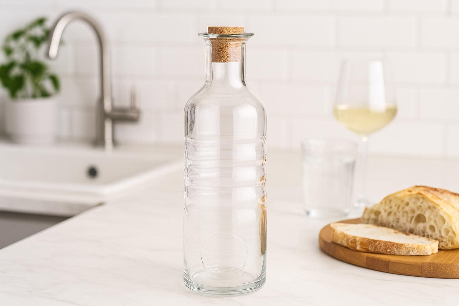 Med en kapasitet på 750 ml og en rund form imponerer flasken med sitt elegante utseende og praktiske håndtering. Korkåpningen sørger for en sikker og stilfull forsegling som beskytter innholdet optimalt.